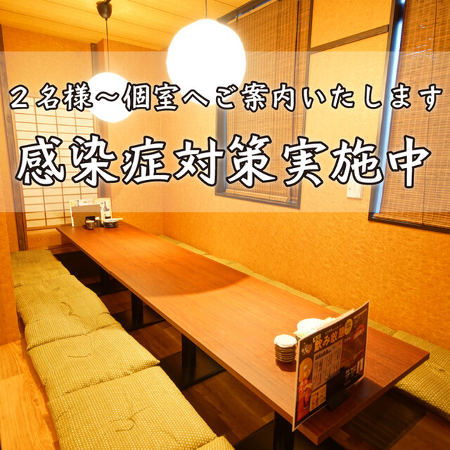 隣客との距離確保または間仕切りあり入店人数や席間隔の調整※間仕切りなし |