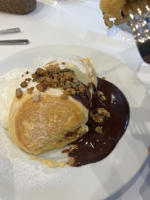 平日お昼に予約して行きましたが、2組くらいしかお客さんいらっしゃらず。 それを見越してか、店員さんもホールは1人だけでした。 期間限定のパンケーキは柿。9/8〜開始。ホ... 詳細を見る
