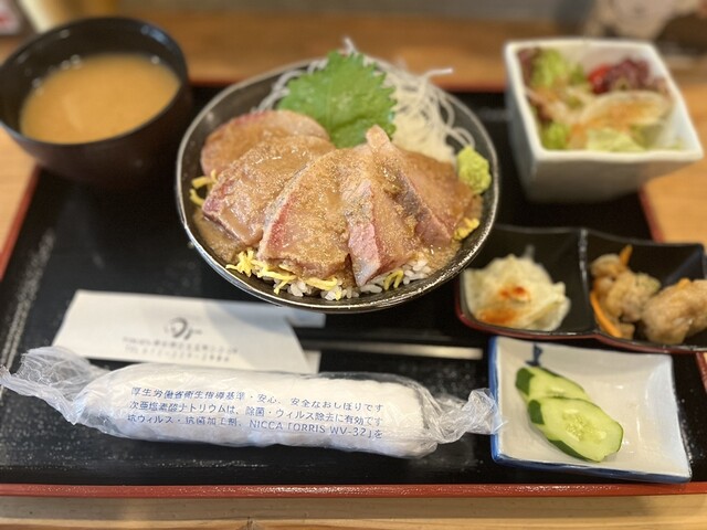 堺東でおひとりランチ!! 以前から行きたかったお店へ♂️ まかない海鮮丼というのがお味噌汁付きで890円! こちらは12:10ですでに売り切れでした♀️ これも食べたかったな 注文したのは お店の名前にも入ってある、 名物 〝藁焼き〟カツオのたたき定食!! 注文... 詳細を見る