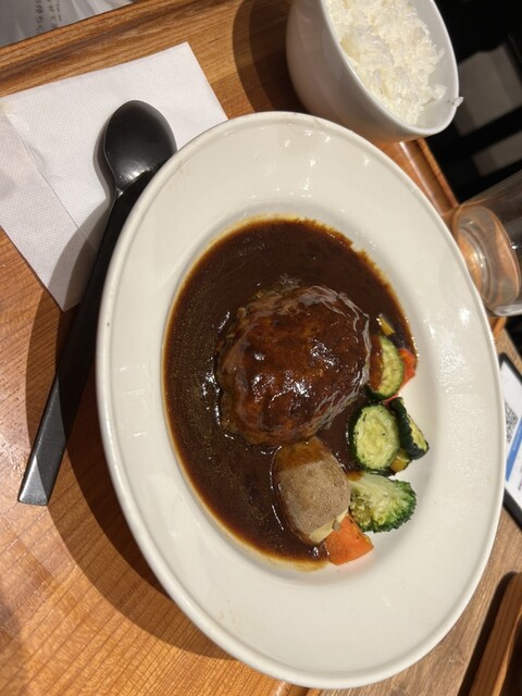 商品の到着時間も混雑時でもストレス無い時間でした。本題のハンバーグはというと、一口食べるたびに溢れる肉汁がお米をかき込まないわけにはいかんのです!気付けばご飯おかわりしてました笑