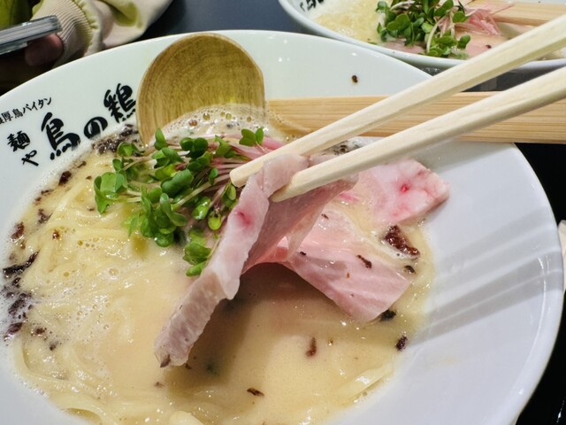 新鮮な国産鶏と水だけで8時間以上炊き込んだクリーミーな鳥白湯スープが自慢!野菜や魚介が一切入っていない純系鳥白湯スープは濃厚でとろりとしていていながら柔らかい口当たりです。トッピングには低温調理で作った自家製レアチャーシューを使用しています。駐車場やテーブル席が多数ございますので、ご家族でもお気軽にお越しください。