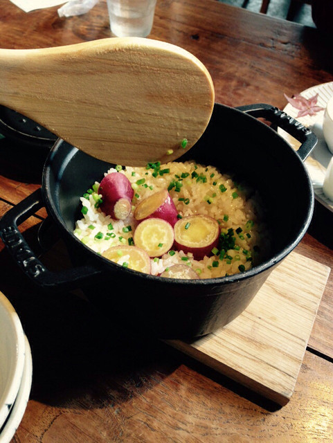 釜のまま出てきたさつまいもご飯も絶品。食べきれなかったらおにぎりにしてくれるそうなのですが、ぺろりと食べてしまいました笑