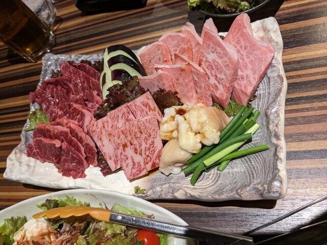 予約を入れてくれていたので、現地集合! 食べたいのを言って、後は、色々と皆んなが注文してくれました。 塩タン、ハラミ、カルビ、ホルモン、キムチ盛り合わせ、病もキムチ、豆腐サラダ... 詳細を見る