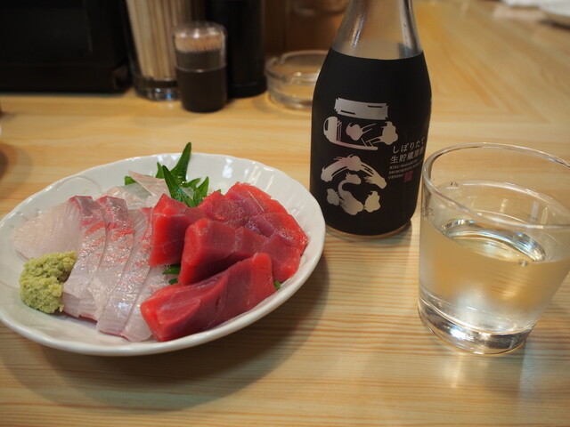 お造り盛り合わせ & 冷酒(菊正宗 しぼりたて生原酒)