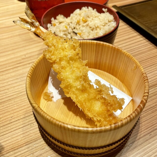 地粉的な風合いのうどん 白もあります こちらは細切りで蕎麦風 特上天丼せいろセット 2300円ほど やや高いかな セットですが先に天丼お願い 天せいろより 卵が多い... 詳細を見る
