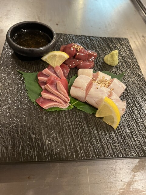 三種盛りの鶏は新鮮で甘いお醤油がぴったり