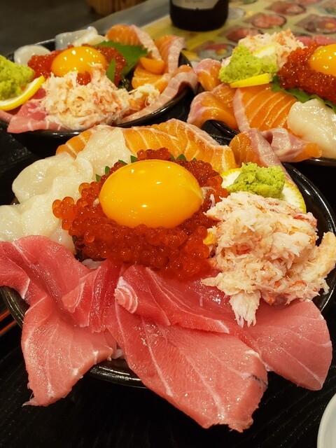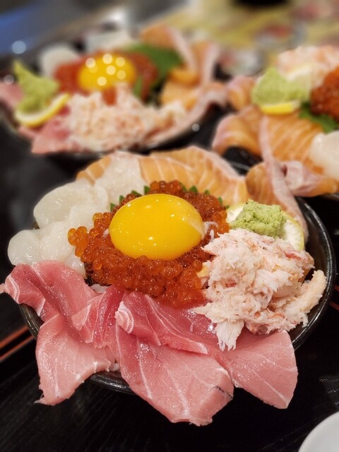 休日に泉佐野漁港に魚を買いに来ました♬ ランチは青空市場内にあるお寿司屋さん「裕太朗寿し」さんへ 今回は沢山の種類の中から北海三色丼! タッチパネルオーダー、お茶はセルフです... 詳細を見る