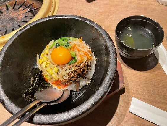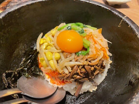 熱々の石焼ビビンバです。店員さんが混ぜてくれるみたいですが、、今回は、自分で混ぜ混ぜ。