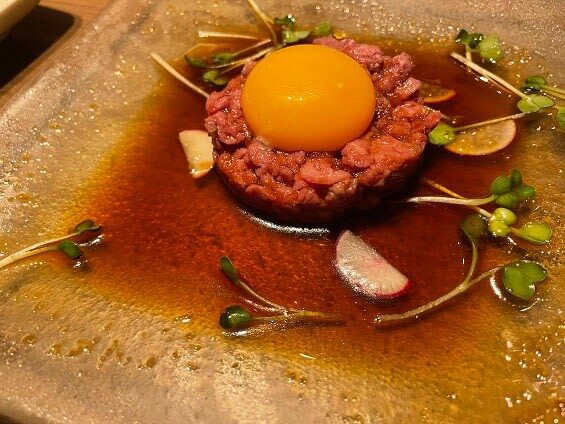 「国産牛ユッケ」。久しぶりににユッケというものをいただきました。一応、低温調理されているとのことでしたが、しっとり、なめらかで美味しかったです。