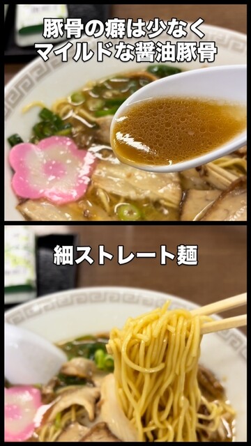 スープは、豚骨醤油ベースながらも重すぎず、旨味とコクがしっかり引き立ちます。醤油の香ばしさと豚骨のまろやかさが絶妙に絡み合い、後味は意外とすっきり。