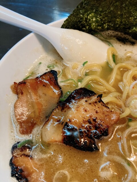 焼豚は炙られており、濃厚スープとマッチし、細麺と絡む‼️