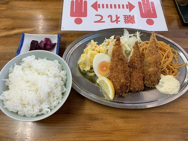 テーブル席に座り、日替わりランチBのアジフライ定食を注文。