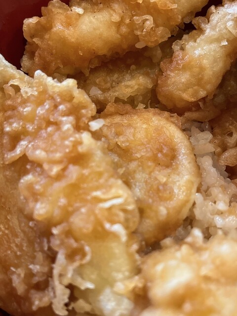 魚てつ天丼は、特にキスはふっくらとして繊細な中に甘味を感じ、白子はクリーミーで少し甘めのタレも素材の味を支えていてかなりの良さ♪♪♪