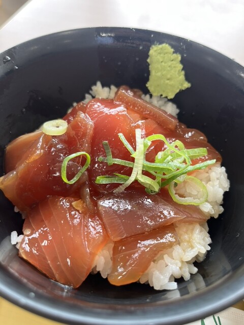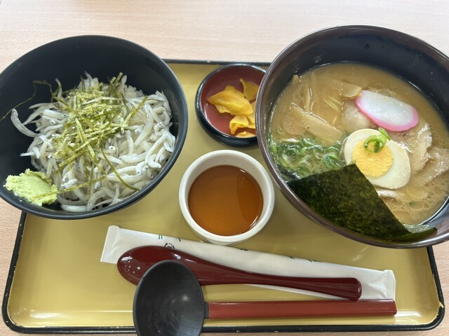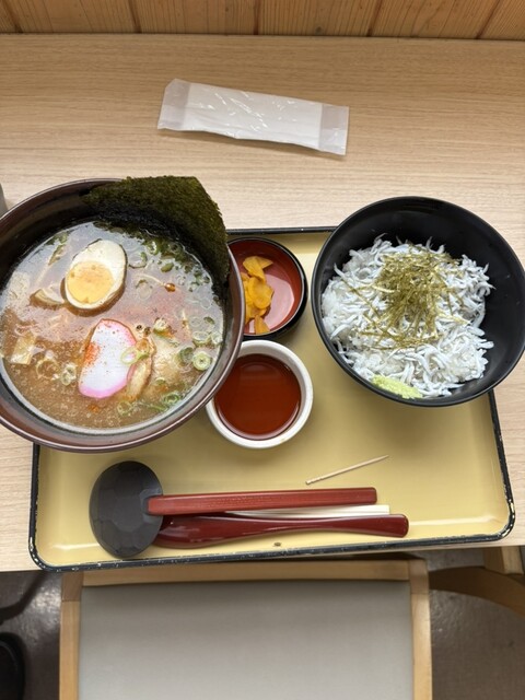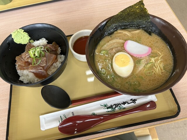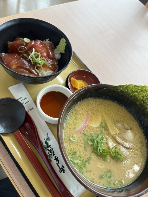 生しらすにも惹かれましたが、お腹が減っていたので、和歌山ラーメンとミニマグロ丼のセット。