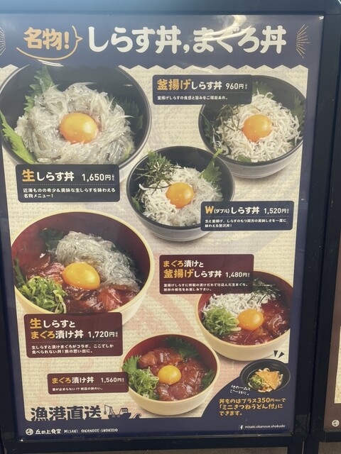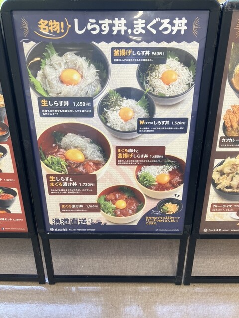看板メニューと思われる生しらす&マグロ漬け丼を注文。