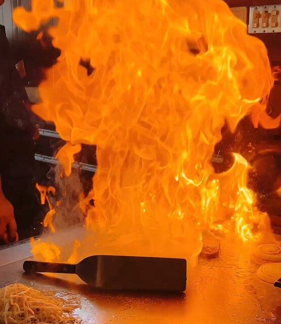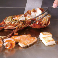 目の前で華麗に焼き上げるシェフのライブパフォーマンスも必見