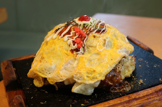 百名店を受賞した当店では、厳選された素材を用いたボリューミーなお好み焼きをご提供。自家製の出汁と良質な小麦粉を使用した生地に大振りのエビなどの具がゴロゴロと入り、食材の旨味も存分に。オススメは豚肉や海鮮など全6種の具材と焼きそばが入った「ミックスモダン焼き」こだわり尽くしの一品をぜひご...堪能あれ。