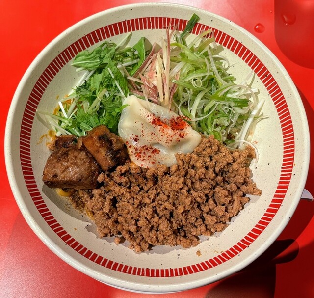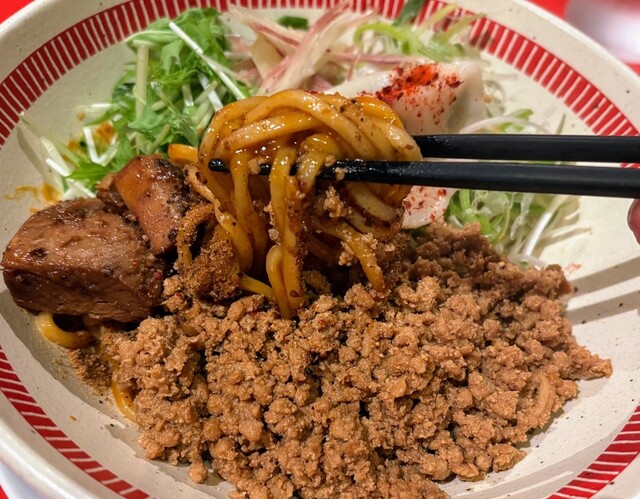 肉盛りまぜそば1,050円、両親はまぜそば950円をそれ...