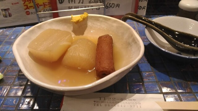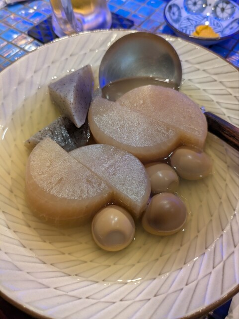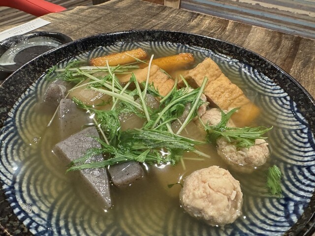 やっと初訪問! まず生ビールにアテは かにみそ うざく まぐろユッケ どれもレベル高いよ!特にうざくは感動レベルでした!そして楽しみにしていたおでんをアラカルトで 大根 ゴボ... 詳細を見る