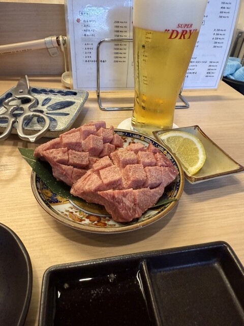 精肉店が直営する焼肉屋として、A5ランクの黒毛和牛を手頃に楽しめます。特に極厚タンはその食感と旨味で人気。ニンニクの効いた醤油タレが絡むハラミもおすすめです。庄内駅からすぐの当店は、割烹のような落ち着きあるカウンター8席のみ。木の温もりが心地よく、お一人様でも気軽にご来店いただけます。少人数での貸切も可能で、特別な日の食事にぴったり。独自のコース料理やホルモンの盛り合わせもぜひお試しください。