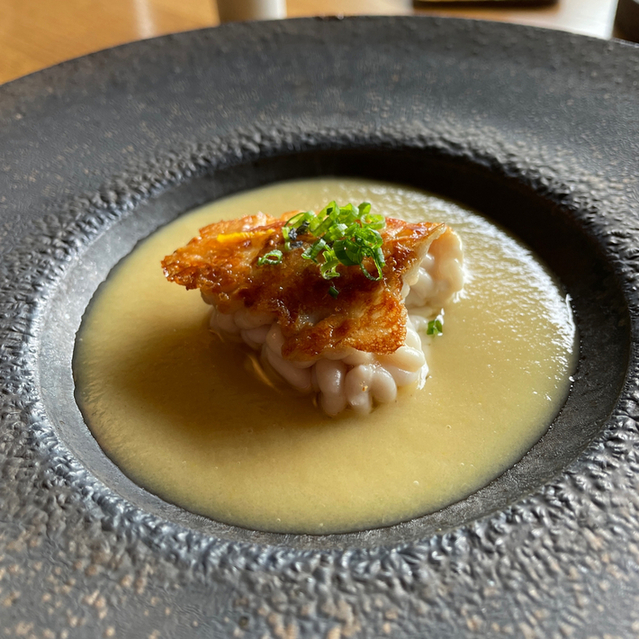 二度目の訪問。コースは一択、1万円+消費税サービス料各10%。計10皿で滞在3時間 ①手始めにカリフラワーピュレ、富山湾白海老、キャビアのカップ デコラシオンさんは野菜のピ... 詳細を見る