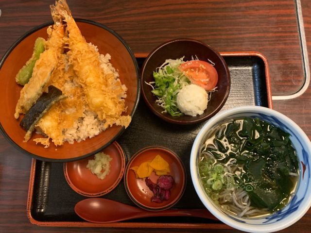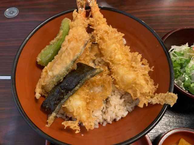 2022年8月某日昼 昼ご飯を食べに行きました。 ◯天丼セット、1420円。 天丼、ご飯の上にえび天2尾、海苔天、かぼちゃ天、ししとう天がのっててタレがたっぷりで汁だ... 詳細を見る