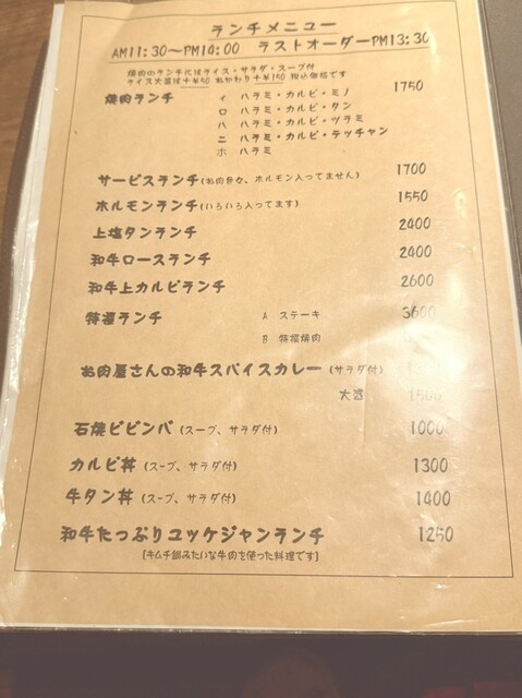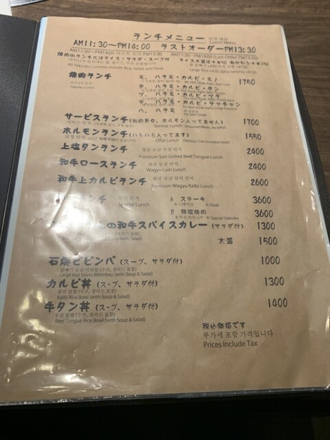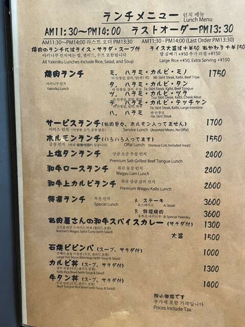 焼き肉ランチ(ハラミ、カルビ、タン)にしました。