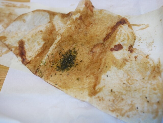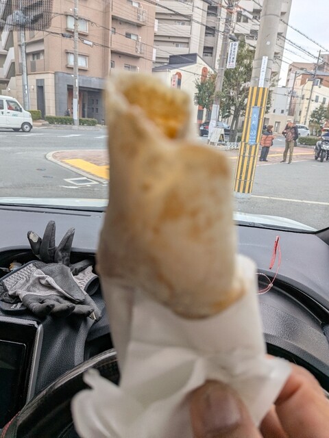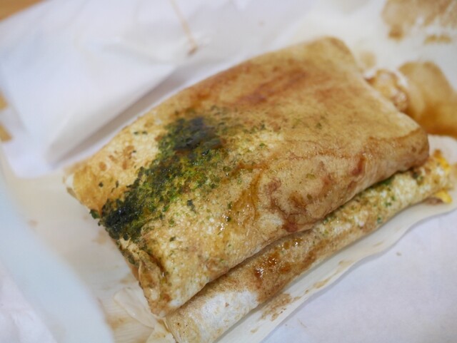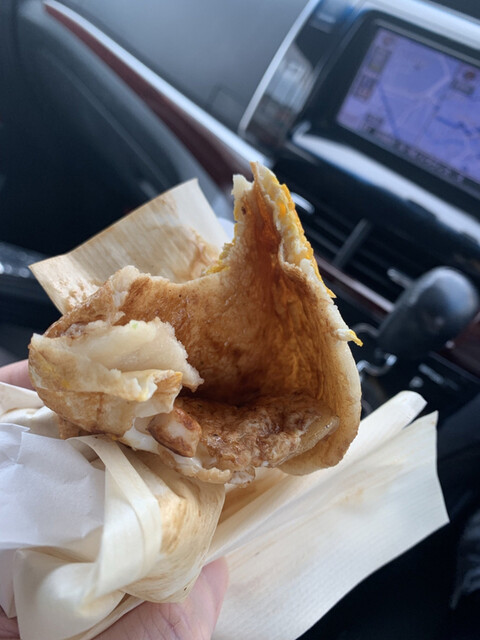 信号待ちで偶然見つけてみつば屋さんで玉子入りイカ焼き1枚・220円注文!