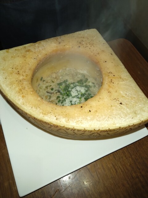 そして、特に感動したのがリゾット!大きなチーズの器に熱々のリゾットを入れて仕上げてくれるんです。目の前で繰り広げられるパフォーマンスは、まさに「五感で楽しむ」という言葉がぴったり。チーズの濃厚な香りが食欲をそそり、忘れられない味になりました。