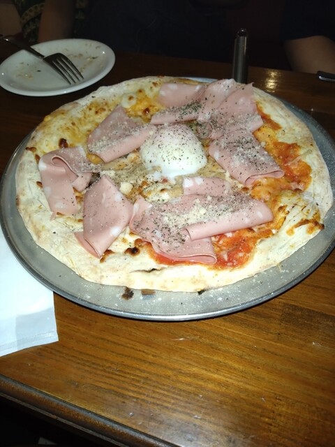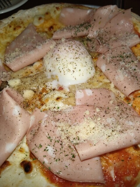 熱々のピッツァは、石窯で焼かれた香ばしい生地がたまらない!もちもちの食感と香ばしさが最高でした。