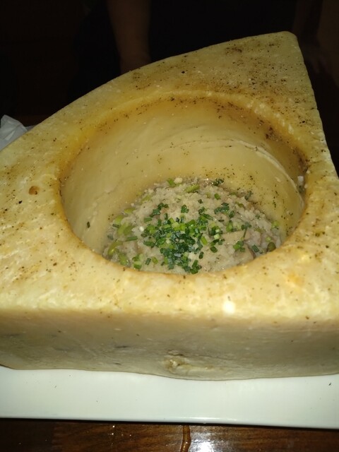 私はラッポルティ名物贅沢リゾットランチをパスタが食べたかったはずがこの写真のチーズにやられてこっちを頼みました。