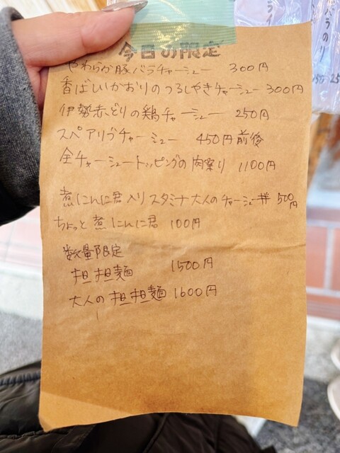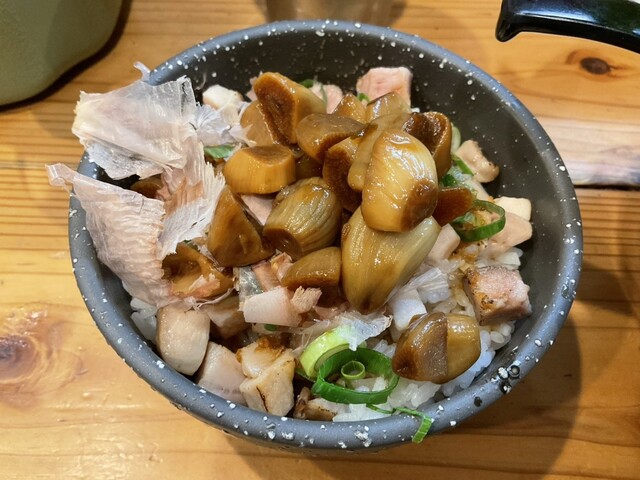 今日はレギュラーメニューになった兵庫県養父市産朝倉山椒1,100円+大好きな大人のチャーシュー丼450円をオーダー。
