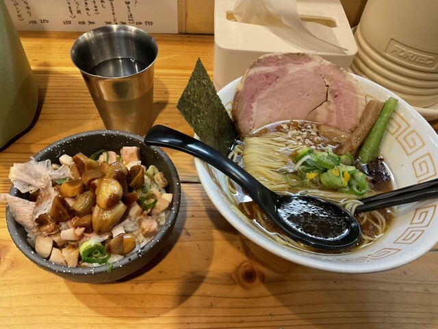 にぼ鶏しょうゆらーめん(1050円)+スペアリブチャーシュー(450円)+台湾やきめし(700円)