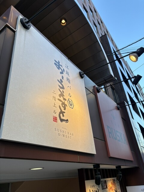 御堂筋線 江坂駅6番出口を出て東に1本目を左へ、50mくらいのビルの2階にある「江坂鮨バル おーうえすと」さんで晩ごはんです。