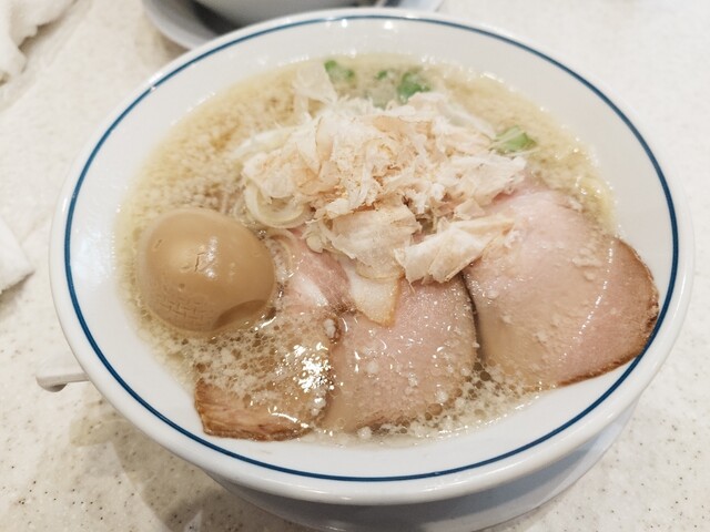 カツオの風味を感じるやさしい塩のスープで美味しい。