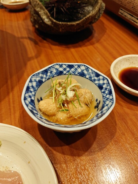 桃山台に住んでいる同僚が「この店美味しいですよー」と言って勧めてくれた魚座・沖のやさんを初訪問です。 お造り五種盛り1,078円 たら白子天ぷら1,320円 うにぎゅう1,100円 釜揚げしらすサラダ858円 ブリしゃぶ小鍋1,320円 にぎり五貫盛り1,650円 など魚を中心に注文しましたが、どれも美味しくて、接客も丁寧でテンポよく料理が出てくるので、気持ちよく食事すること... 詳細を見る