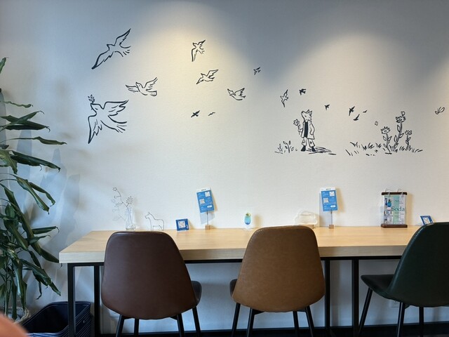 壁のイラストが可愛く、オシャレで清潔な雰囲気が充満しているカフェを見つけました。 座席は4人テーブル✕2、2人テーブル✕1、それにカウンター使用席に4人。すべて利用しても14人。... 詳細を見る