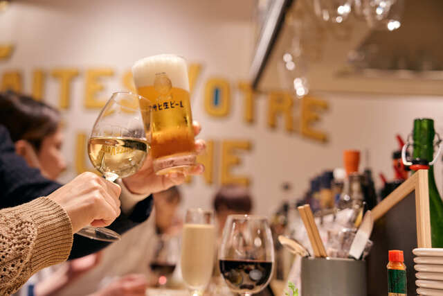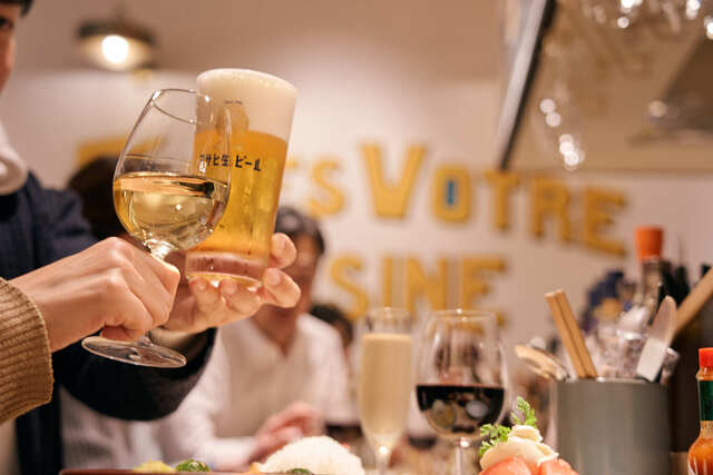 | ドリンク | 日本酒あり、焼酎あり、ワインあり、カクテルあり、ワインにこだわる、カクテルにこだわる |