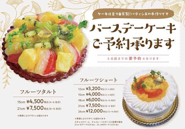 | サービス | お祝い・サプライズ可、テイクアウト、デリバリー |