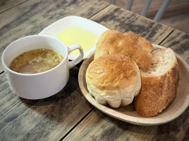 ランチタイム/ディナータイム共にバゲット、フォカッチャ、湯種パン、白パンの4種類が食べ放題です。 (発酵バターは150円) オリーブオイルはリベイク用トースターのテーブルに置い... 詳細を見る