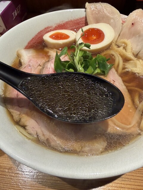 土曜日11時30分到着。最後1席に滑り込み。 ブラックは初だと思います。 とぅるんとぅるんなガゴメ昆布水に浸った麺は相変わらず美味。 ガゴメだと私には粘度高すぎのお店多く苦手感あったけど、こちらのは粘度低め(それでも通常昆布水よりは高い)で、とても好印象。ガゴメで最初から最後まで美味しく頂いた... 詳細を見る