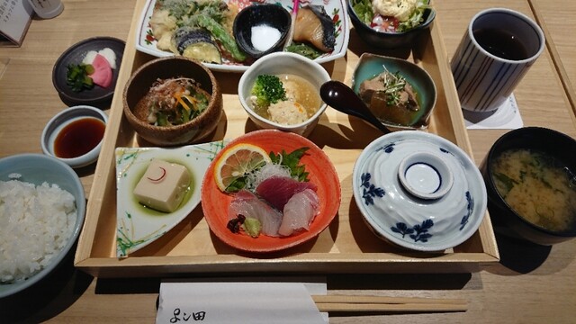 リーズナブルによし田の味をお愉しみいただけます。新鮮なお造りをはじめ 旬の焼き魚、煮物、肉料理、揚げ物、お食事をご賞味ください。 アレルギーや苦手な食材など臨機応変に対応いたします、ご予約時にご相談くださいませ。 ※当日ご注文承ります。お気軽にご相談くださいませ。