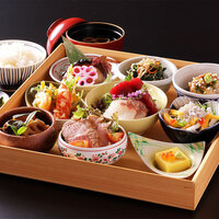 木箱に盛り込む旬魚菜の数々。 美味美彩なお料理をお愉しみください。 記念日・接待等、特別な日のお食事にも最適です。 アレルギーや苦手な食材など臨機応変に対応いたします、ご予約時にご相談くださいませ。 [土日祝はランチ2部制となります] 第1部:11:00~12:30 第2部:12:45~14:00[土日祝] ※第2部はお電話にてご予約ください。