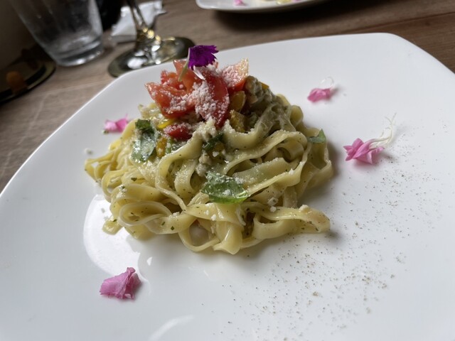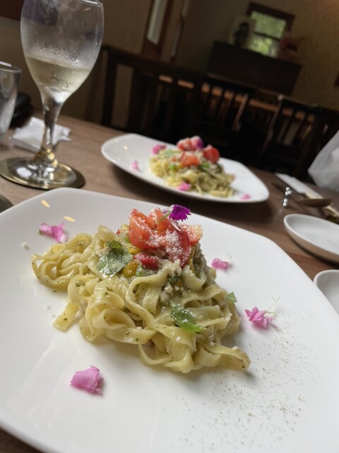 お昼時に家族で訪問。パスタセットにピザを追加して注文。テラス席は川の音が聞こえ、木々に囲まれているので個室感があり心が落ち着く。店員の方の対応も親切で、一品一品、料理が美味しい。雰... 詳細を見る