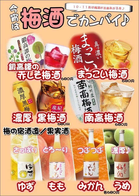 | ドリンク | 日本酒あり、焼酎あり、カクテルあり |