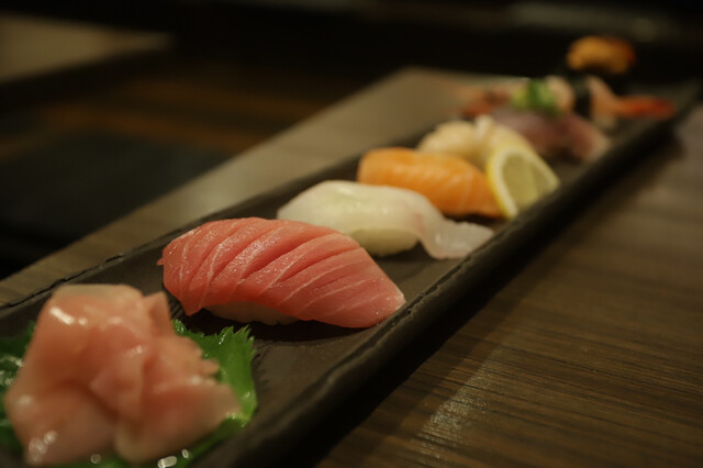 カウンター席で新鮮なネタと大将の丁寧な説明を聞きながら