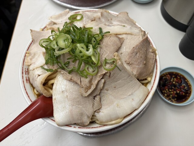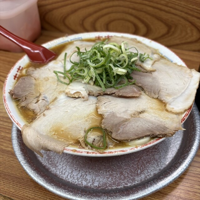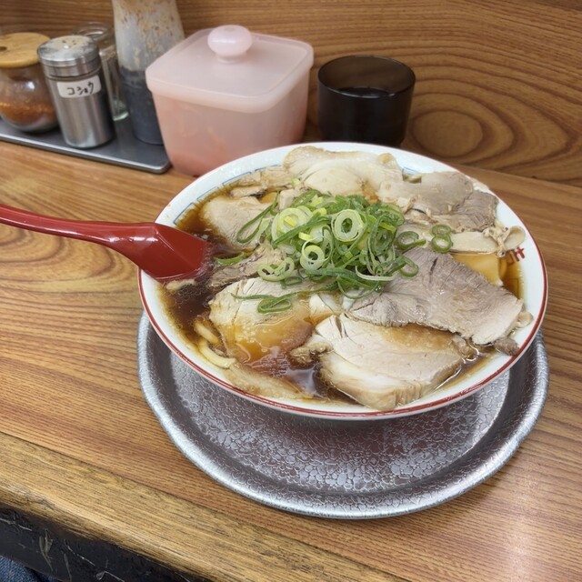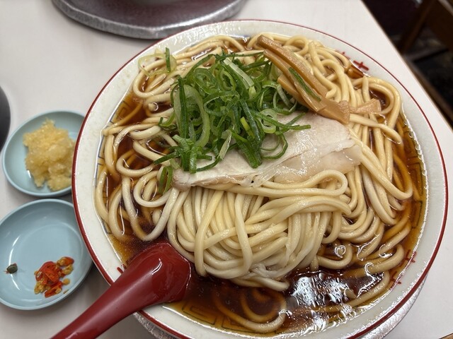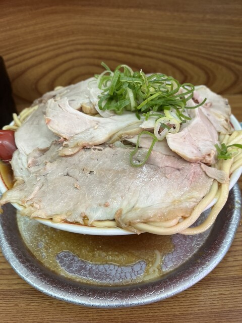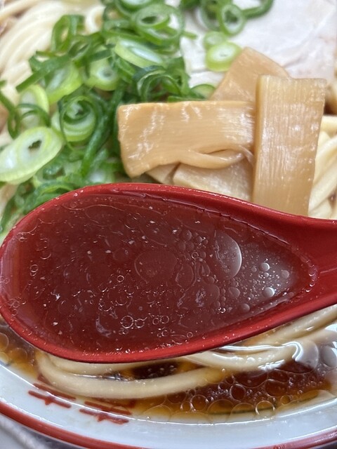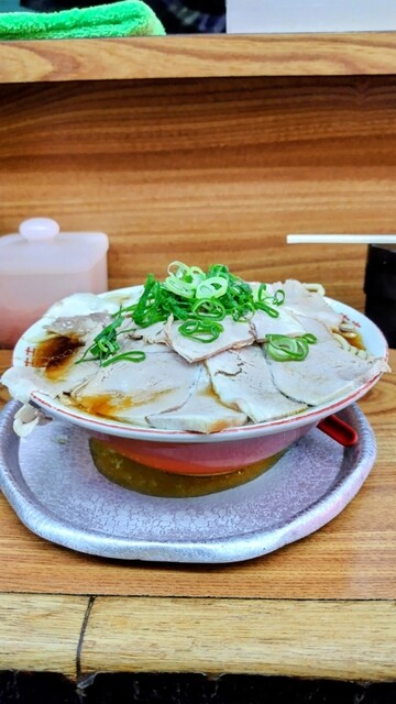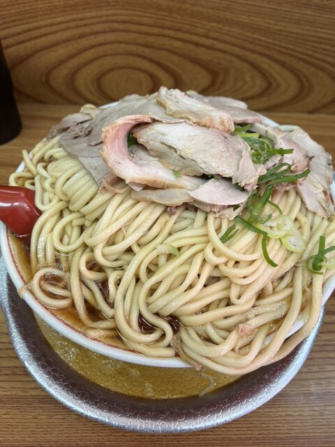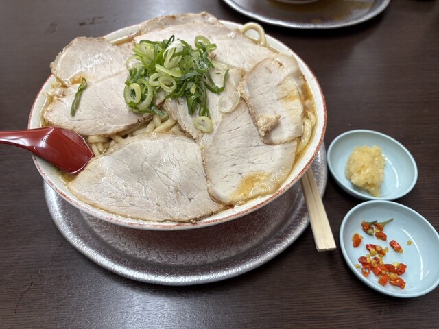 休日の茨木で、あえての「ミニ+半ニンニク」という確信犯的な選択。醤油のキレが際立つ漆黒のスープに、もっちりとした自家製の極太麺が完璧に調和しています。ニンニクが溶け出すごとに増幅する野性味あふれる旨み...