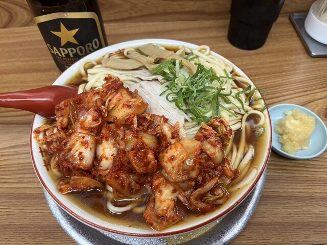 キムチとにんにくでスープの味にパンチがあるようになった。麺の太さは元々好...