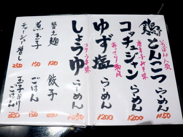 テーブル席に着いて何食うかで連れと悩んで、私は1番人気の鶏とんこつラーメン、連れは辛いのが好きなのでコチュジャンラーメン...