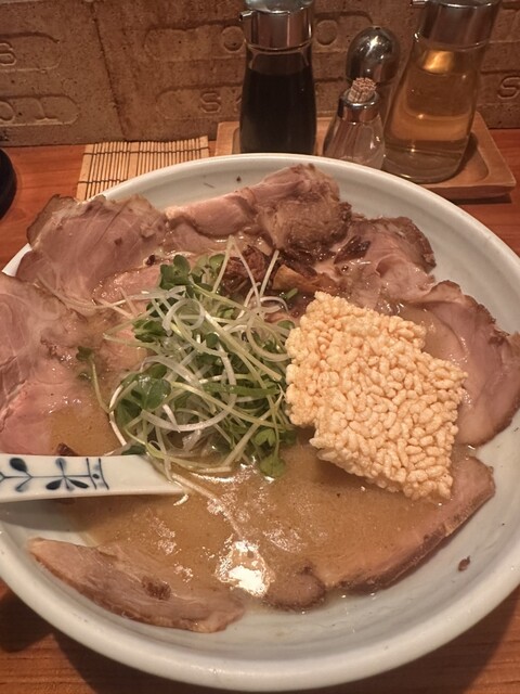営業開始早々列が出来てて、ワンオペで一生懸命頑張っておられて、こちらも応援したくなりました。ラーメンに乗ってるお焦げが最高に美味しかったです。卵かけご飯のタレが抜群に美味しくてまたリピートしたいです!